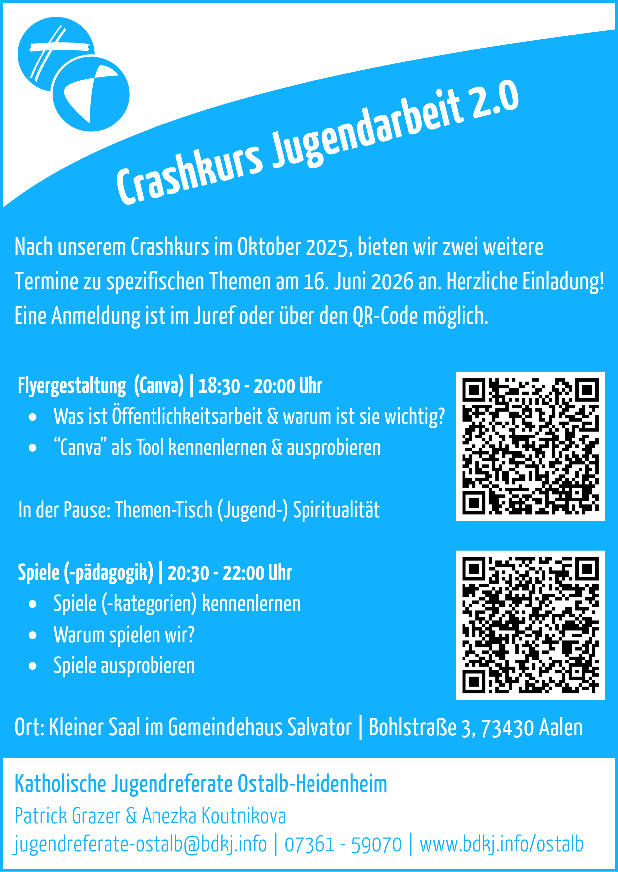 Nach unserem Crashkurs im Oktober 2025 bieten wir zwei weitere Termine zu spezifischen Themen an. Herzliche Einladung an alle im KGR/Jugendausschuss.