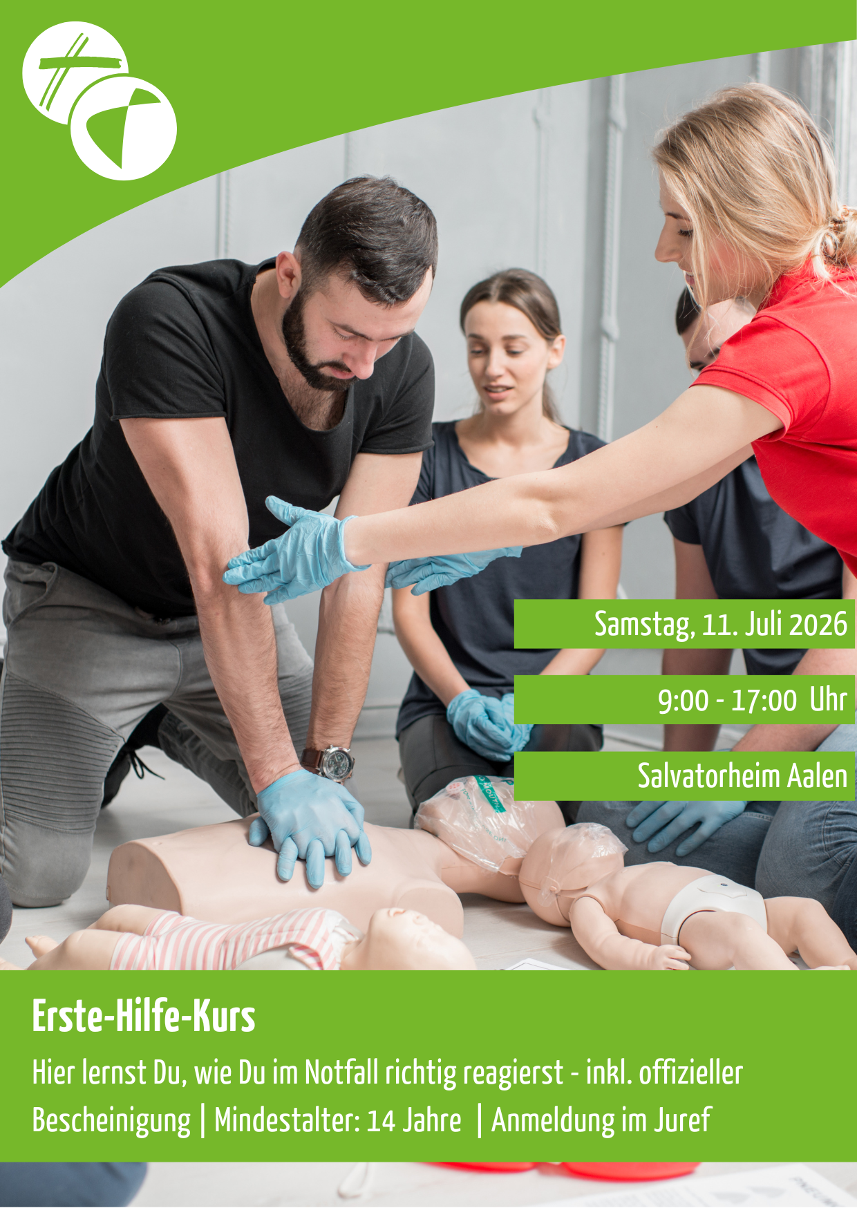 Beim Erste-Hilfe-Kurs lernst Du den Überblick zu behalten, die richtigen Entscheidungen zu treffen und erfolgreich Erste Hilfe zu leisten.