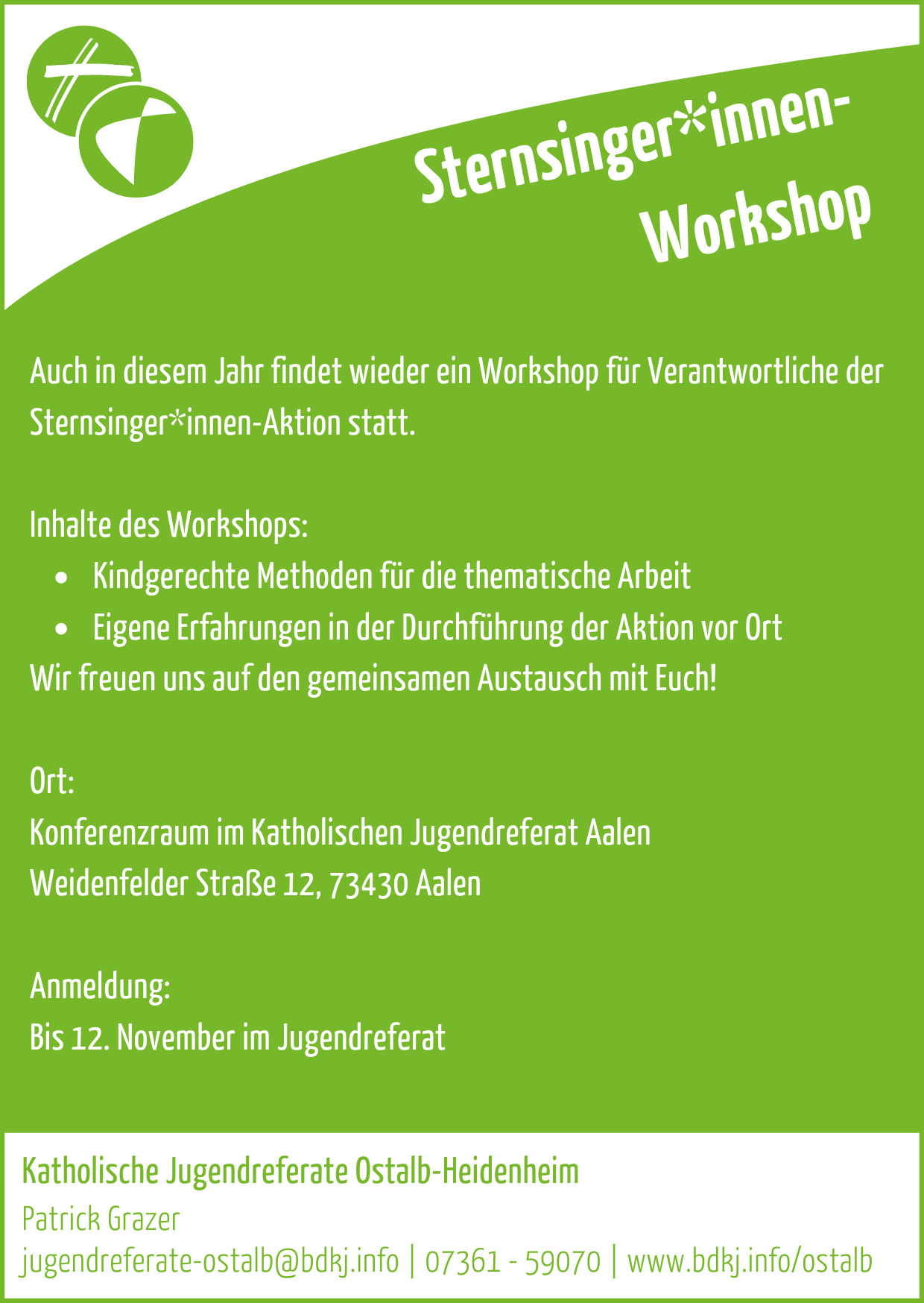 Der Workshop wird dieses Jahr gemeinsam von den Jugendreferaten Ostalb und Heidenheim angeboten.